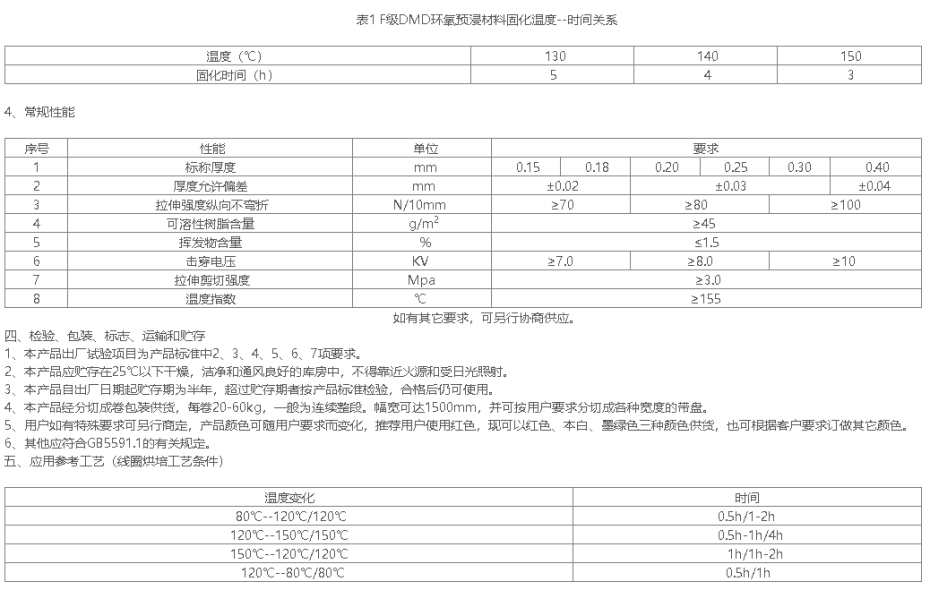 F级DMD环氧预浸料具有优良的机械、电气性能、耐热性能好,贮存期长,成型工艺简便。